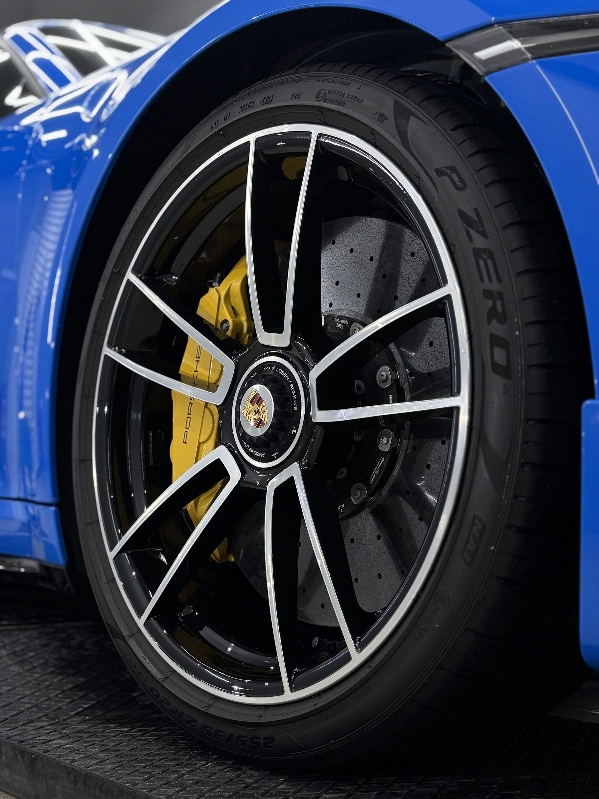 Professional dry ice cleaning of the wheels – the wheels are disassembled to ensure access to all surfaces, including the inner rim and brake caliper areas.